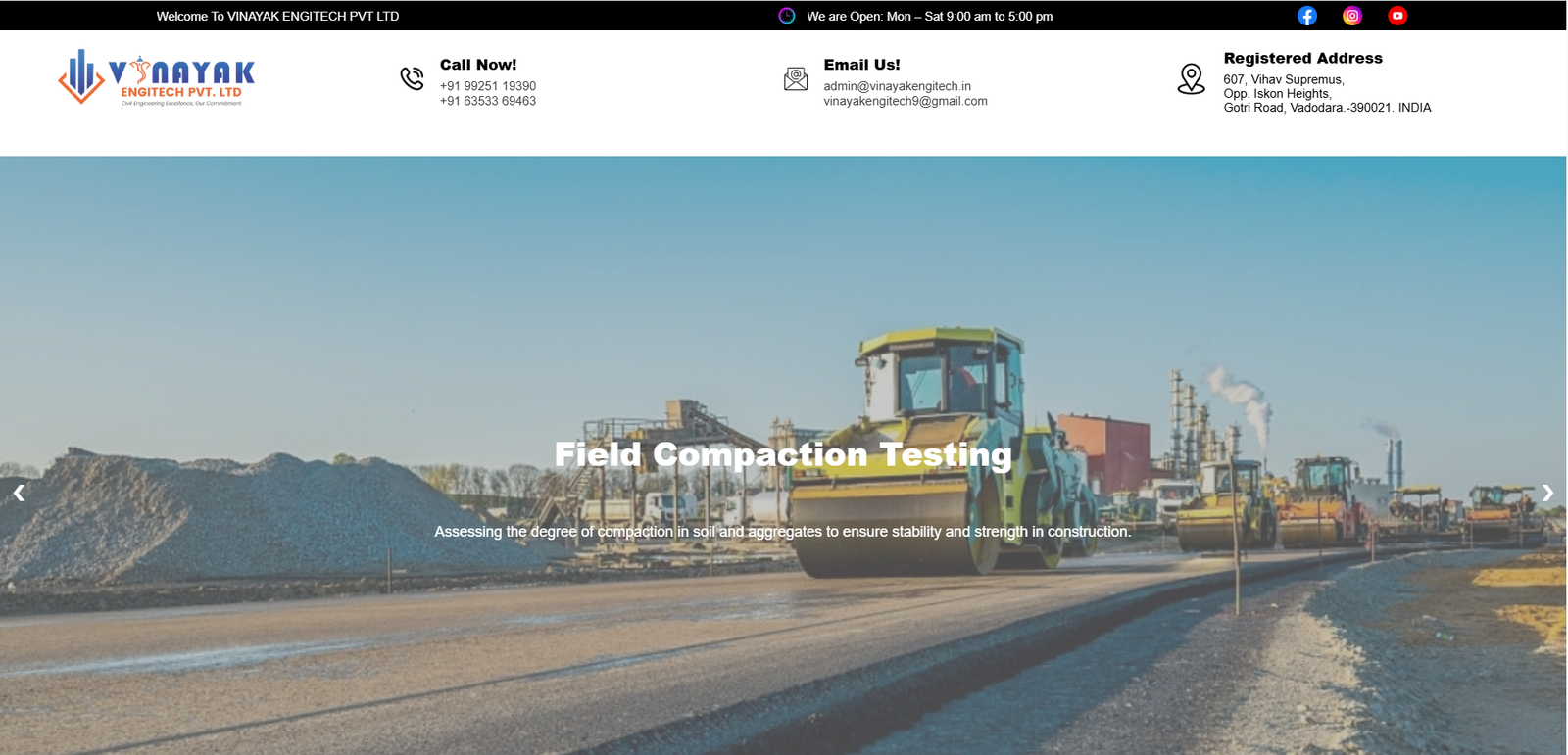 VINAYAK ENGITECH PVT LTD is a leading company with NABL Accreditation and Government of Gujarat Approved laboratory, providing most professionally sound and reliable services in various discipline of civil engineering